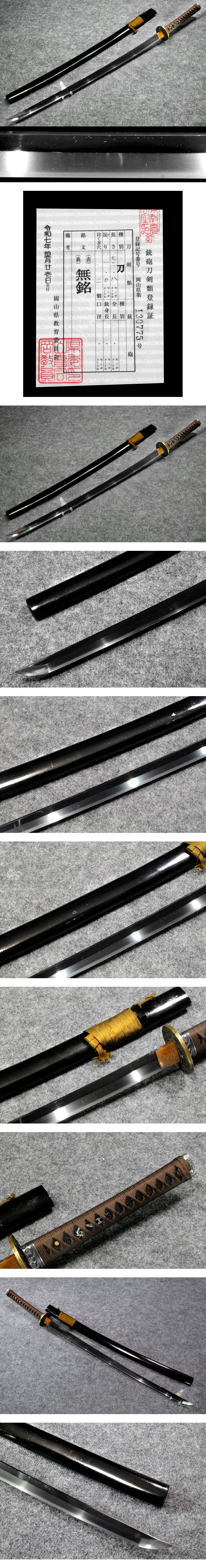 刃長72.8cm元幅32mm先幅22mm元重7mm先重6mm刀身重762g 寸法はスケールを当てた約寸です。厳格な数値ではありませんので、参考値とお考え下さい。不明な点があれば、入札前に質問してください。