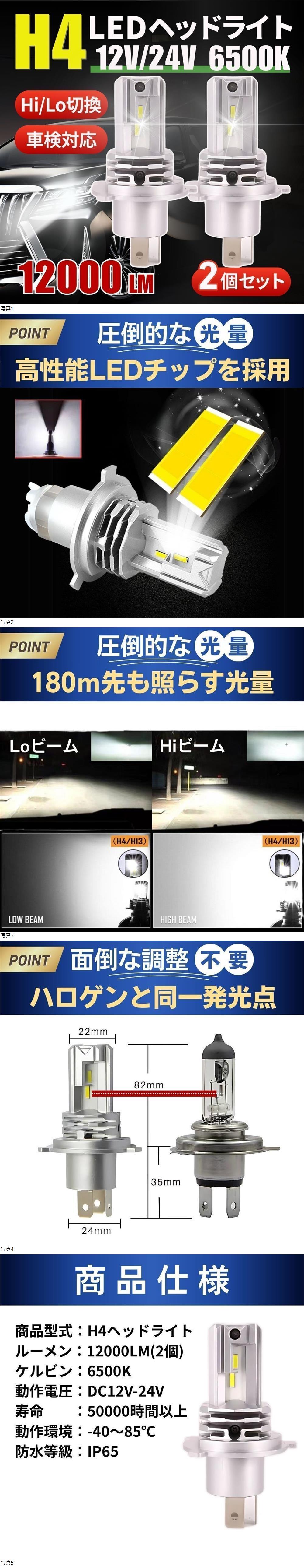 H4 LED ヘッドライト 6500K 車検対応 Hi/Lo 防水 バルブ ファンレス 爆光 2個セット トヨタ 日産 ホンダ バイク 省電力 ホワイト 白 ポン付 收藏