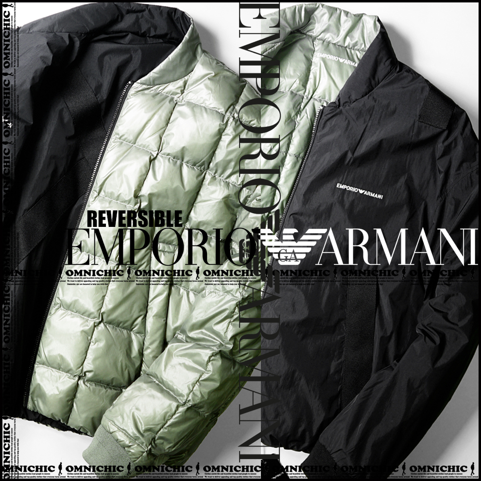 贅沢2WAYリバーシブル■新品正規品23-24AW【EMPORIO ARMANI】エンポリオアルマーニロゴ両A面キルティングダウンジャケットブルゾン52/XL 收藏