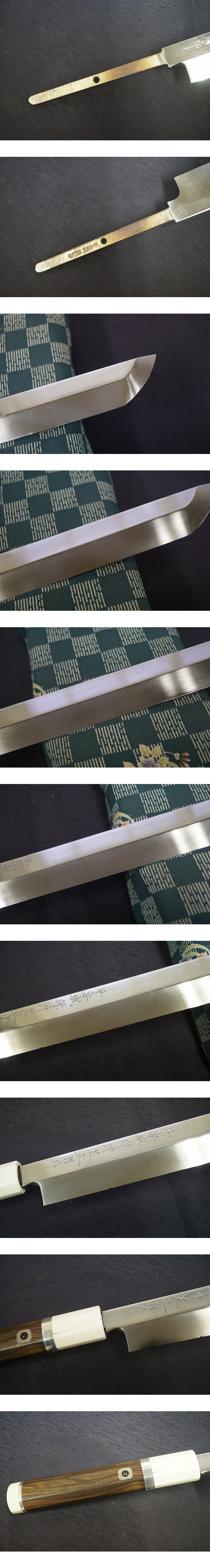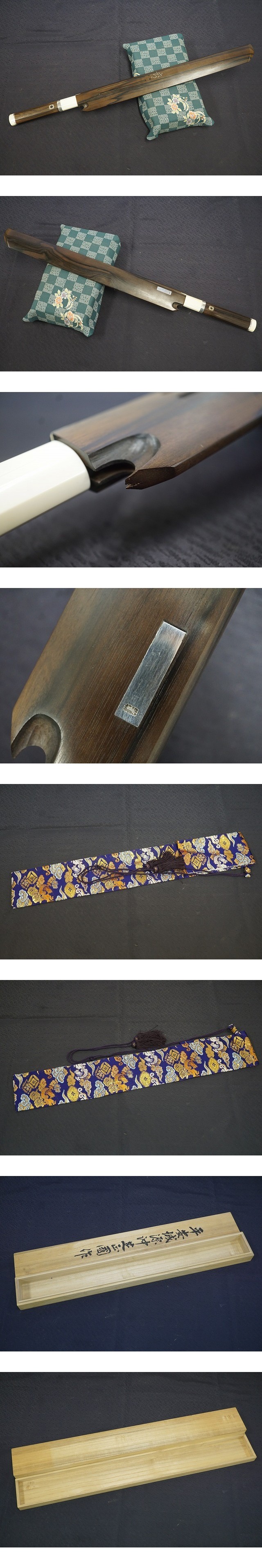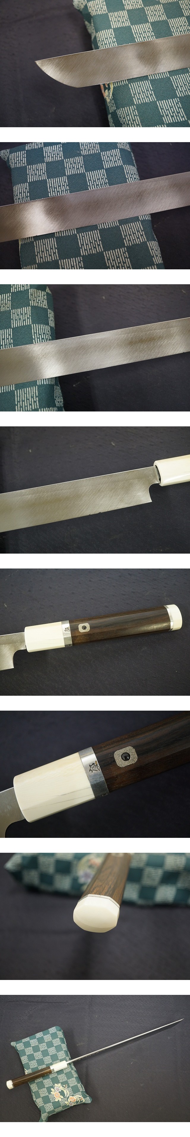 [QS][A6789810] 希少品 平成城源沖芝正國 本焼 黒檀 先丸 刺身包丁 和包丁 全長約:560mm 刃長約:390mm 重量約:370g 鞘/箱/保証書 等付属 收藏