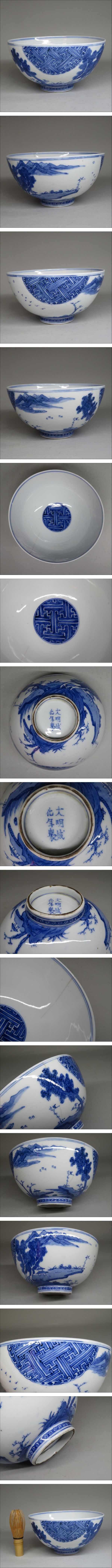 | 【東】明時代 「大明成化年製」 青花風景図大鉢 中国美術/古美術・骨董品 | ||