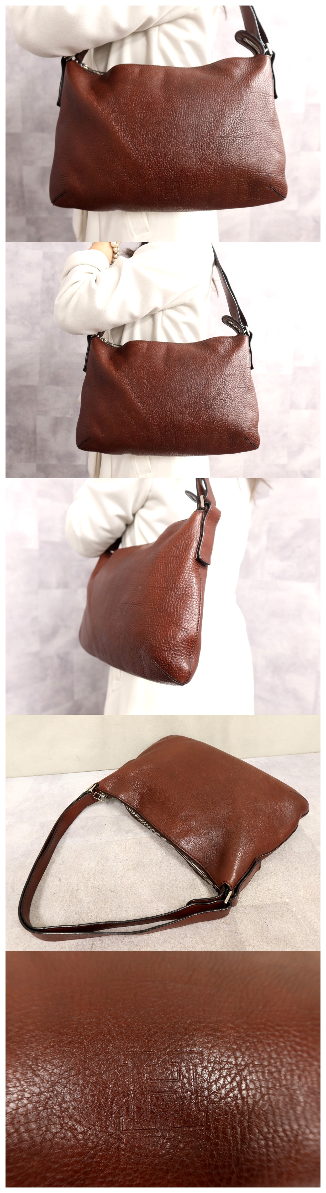 ●超美品●HIROFU ヒロフ●ロゴ型押し●カーフ レザー 本革●ショルダー バッグ●ブラウン●シルバー金具●B5 収納 書類 かばん●Js64500 收藏