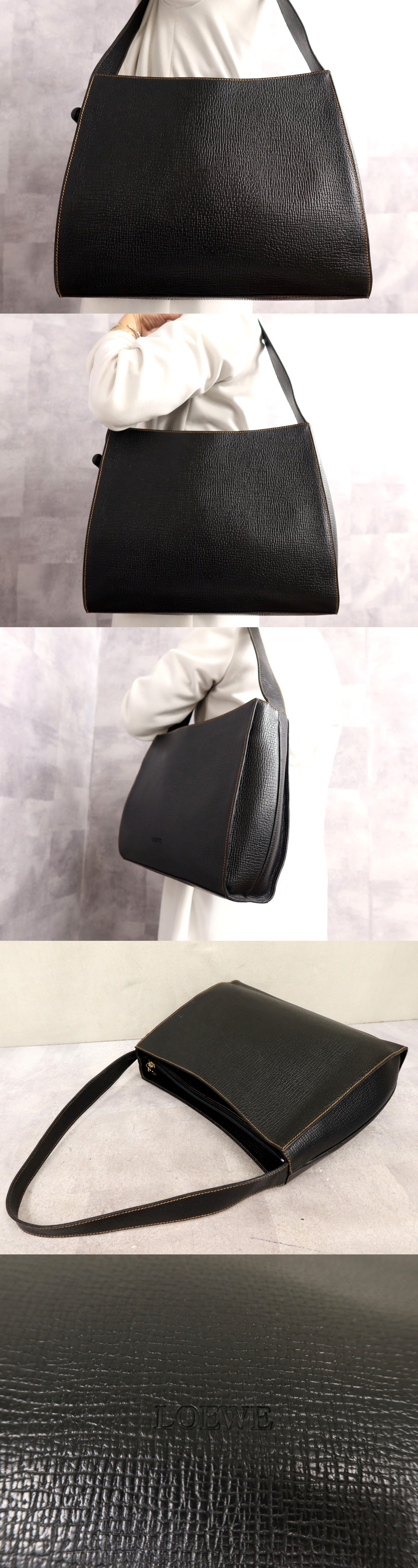 ●超美品●LOEWE ロエベ●ロゴ型押し●カーフ レザー 本革●ショルダー バッグ●黒●ゴールド金具●肩掛け●A4 書類 収納 かばん●Js64802 收藏