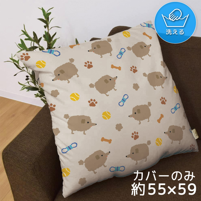 座布団 カバー カバーのみ 約55×59cm 洗える ファスナー付 かわいい リビング 転写プリント イラスト CSC-B173 プードル 犬 アニマル 收藏