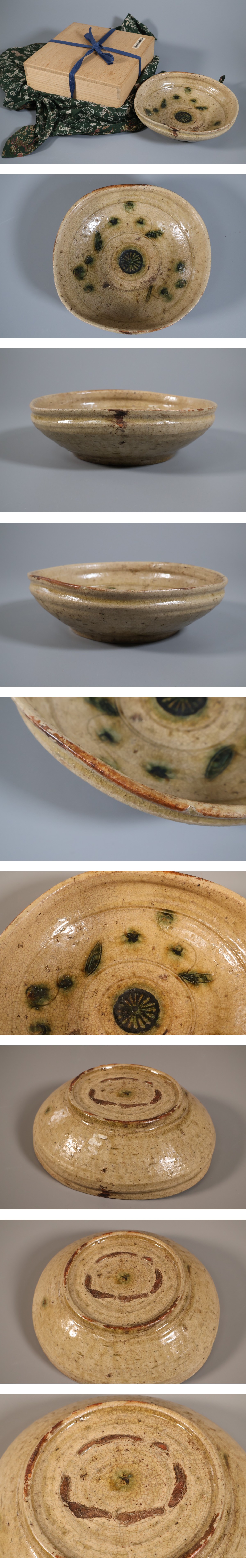 【和】(A4037) 時代古作 桃山 黄瀬戸印花文平鉢 菓子器 茶道具 油揚手 保管箱有 古美濃 古瀬戸 收藏