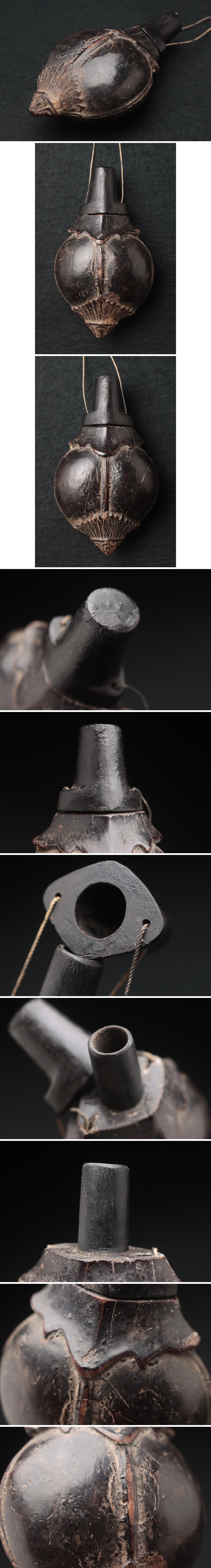 | ◆ 時代 火縄銃用 黒漆塗 果実形 火薬入・火縄銃口火薬・弾薬入・煙硝入 武具 刀装具 小道具 古道具 古美術 ◆