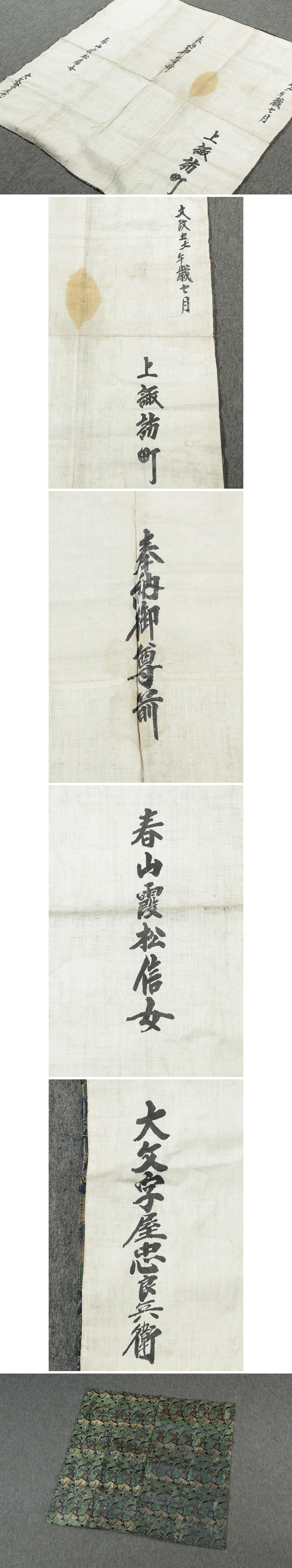 | ◆ 文政(江戸時代) 古裂 刺繍 松竹梅扇面柄 御盆祭壇用掛け布・仏前敷物 大文字屋忠良兵衛 仏教古美術 ◆