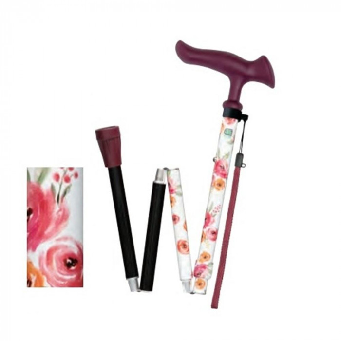 フジホーム ステッキ 杖 かるがもファムII折畳 花柄ホワイト WB5223 收藏