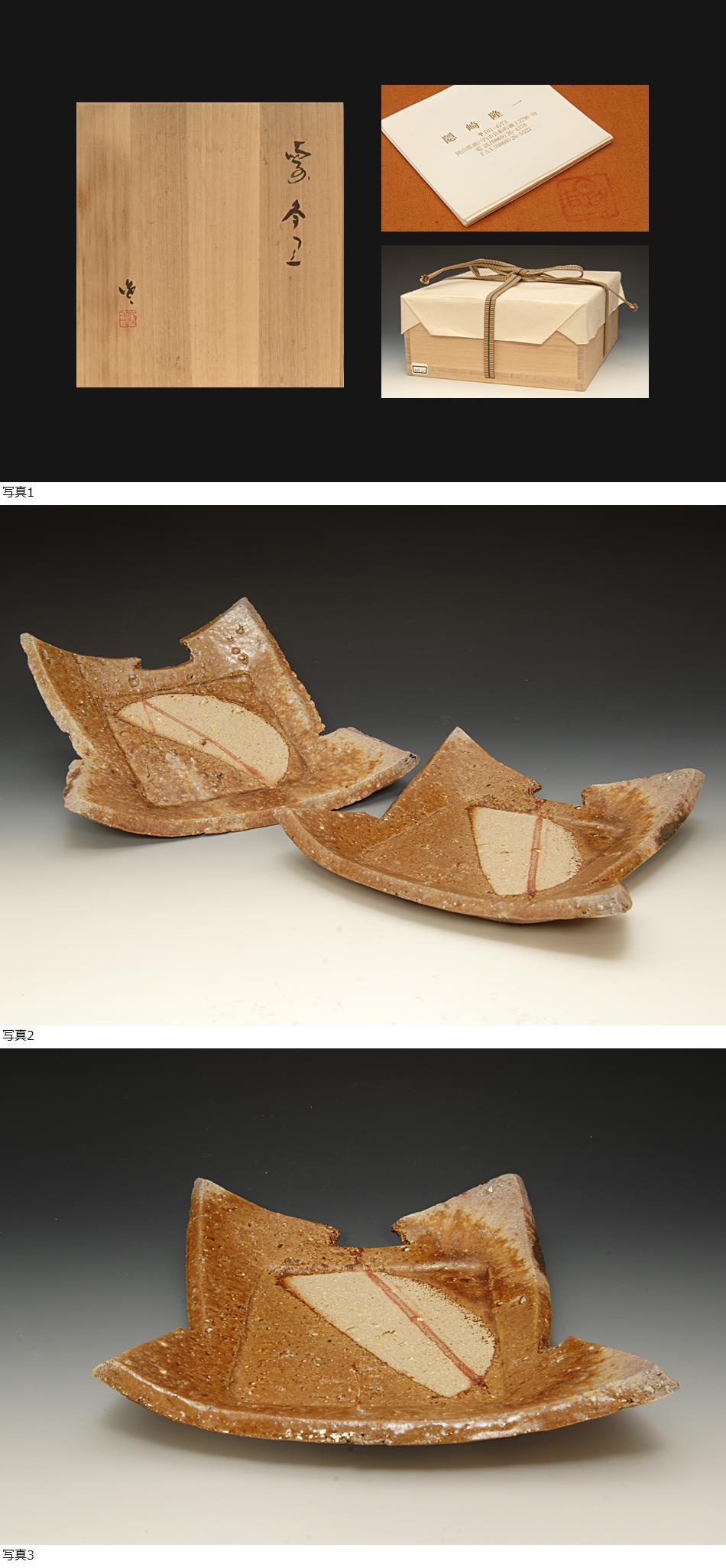 星庵厳選名品企画 隠崎隆一 備前火襷四方皿一対 共箱