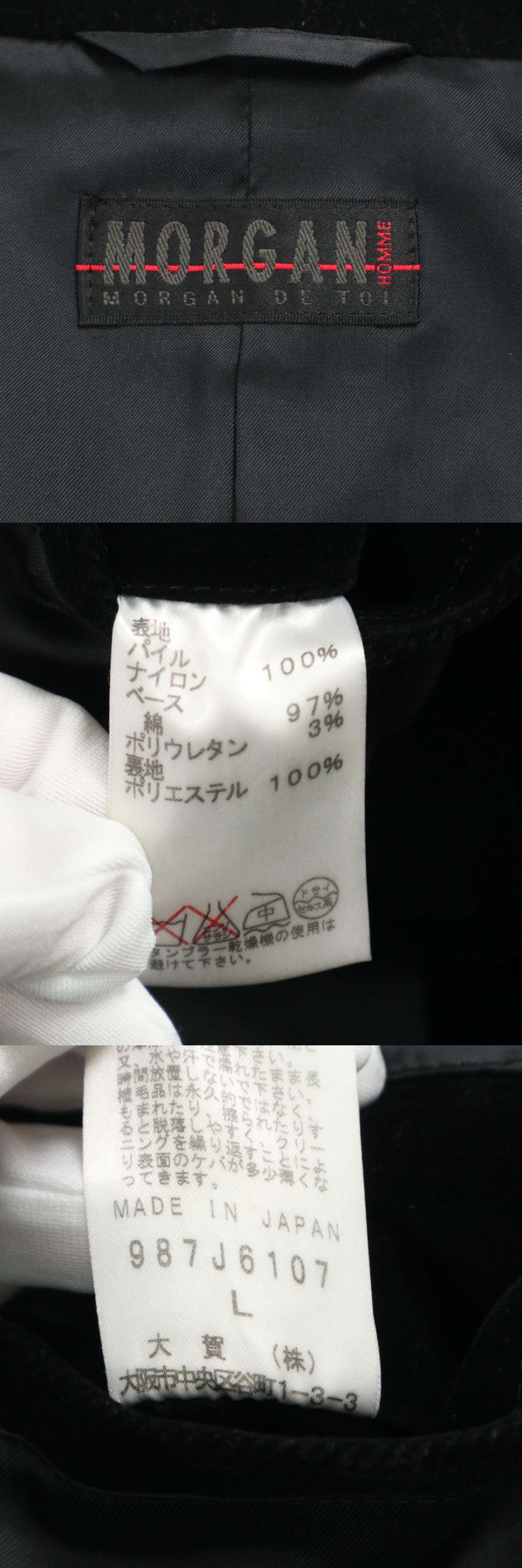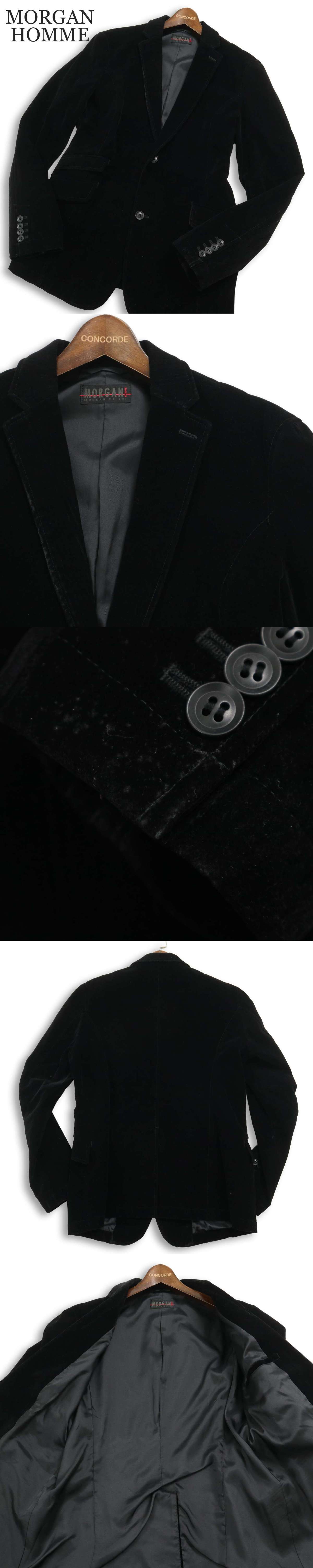 MORGAN HOMME モルガン オム 秋冬 総裏 ベロア★ テーラード ジャケット ブレザー Sz.L メンズ 黒 日本製 收藏