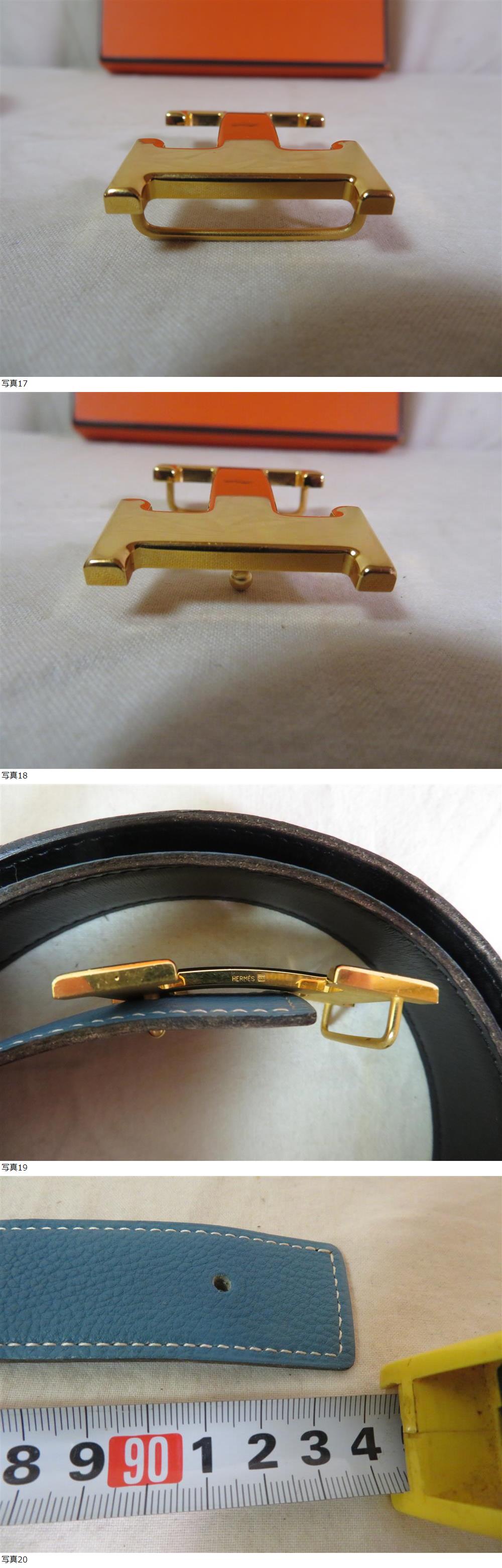HERMS エルメス コンスタンス Hバックル ゴールド リバーシブル ベルト ブルージーン×ブラック 良品 箱付 收藏