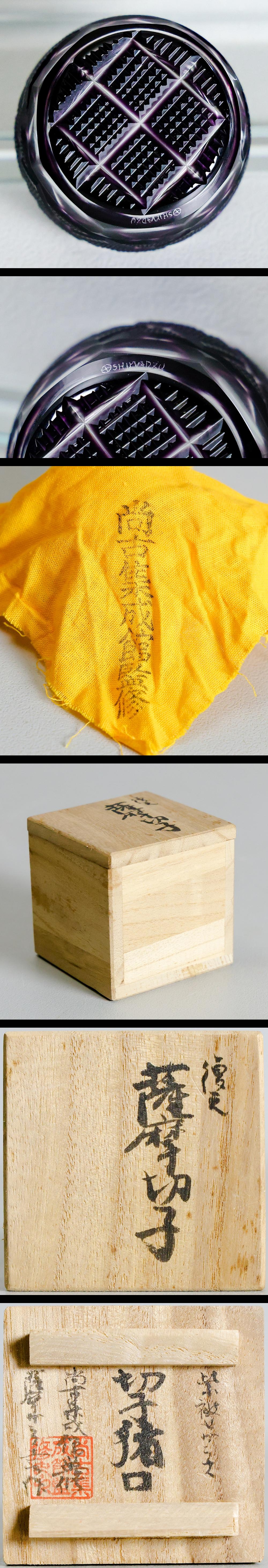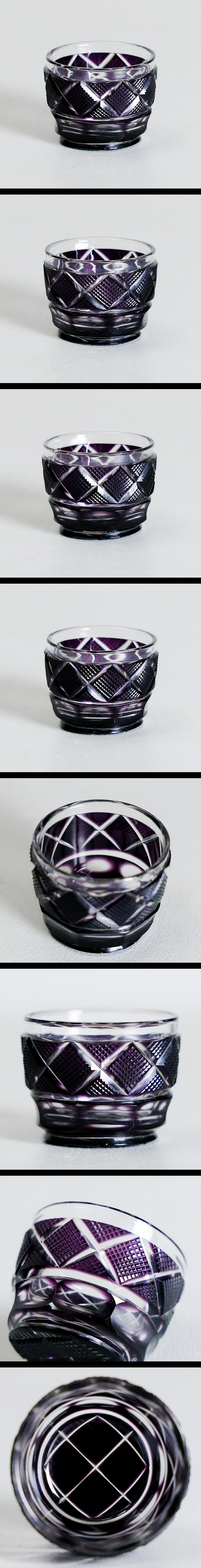【真作】【WISH】薩摩ガラス工芸「復元 薩摩切子 紫被せガラス 切子猪口」 尚古集成館監修 クリスタルガラス 共箱 高さ4㎝ #25126045 收藏