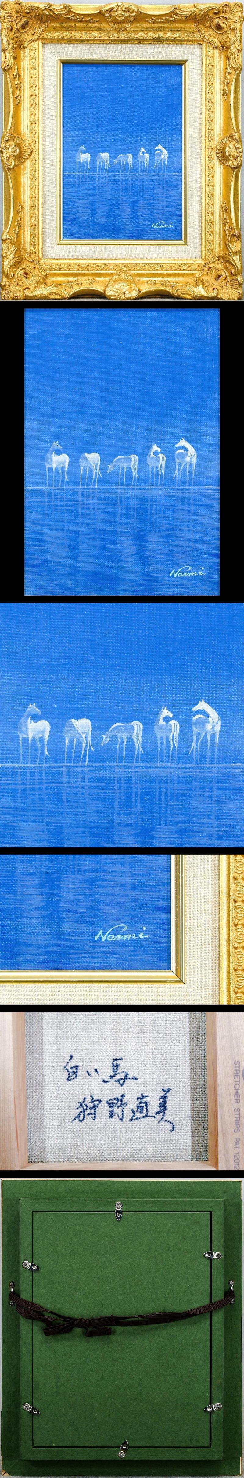 【真作】【WISH】狩野直美「白い馬」油彩 SM ◆夜色の水辺に姿を揃えて立つ白馬 〇中日美術協会会員 個展・グループ展 #26022062 收藏
