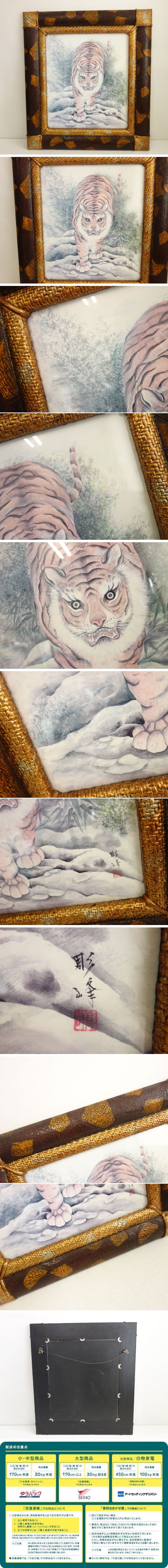 【中古】M▽彫峰 絵画 額縁 八方睨みの虎 落款 (39823) 收藏