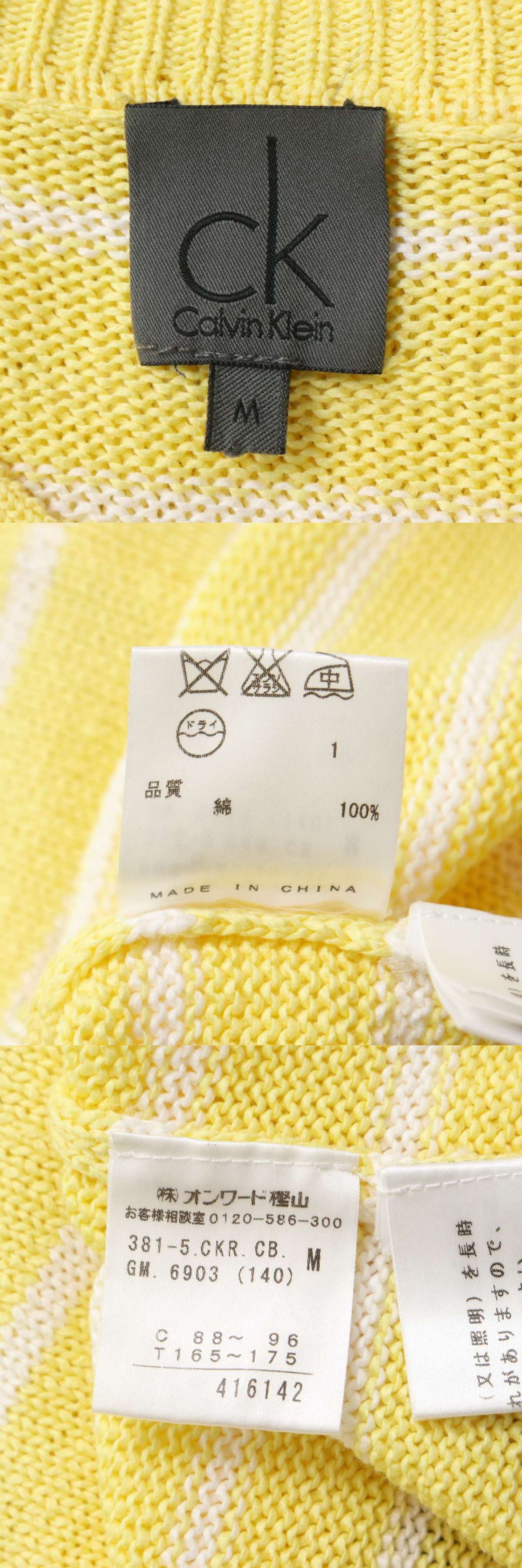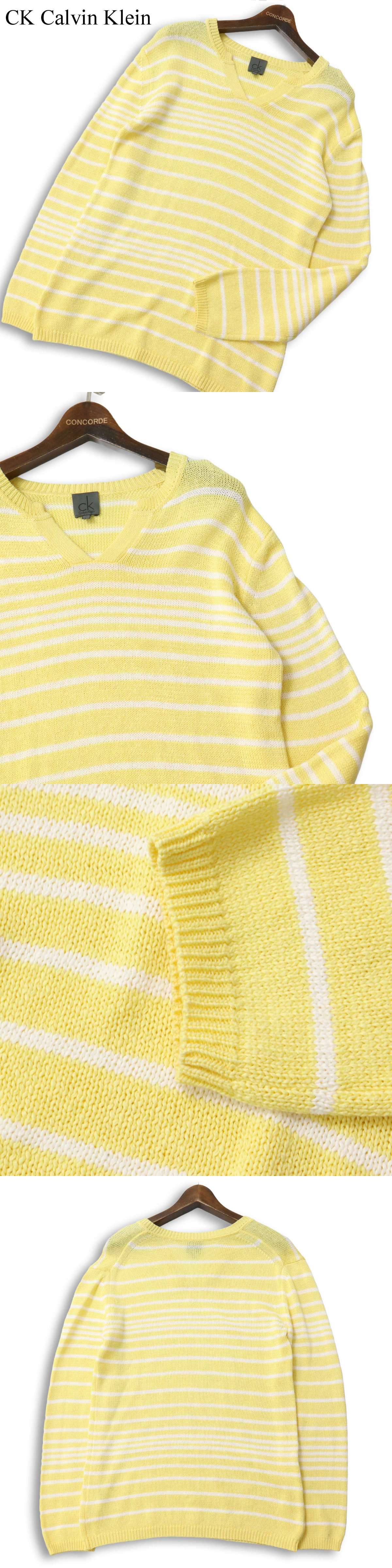 CK Calvin Klein カルバンクライン 通年 ボーダー★ Vネック コットン ニット セーター Sz.M メンズ 收藏