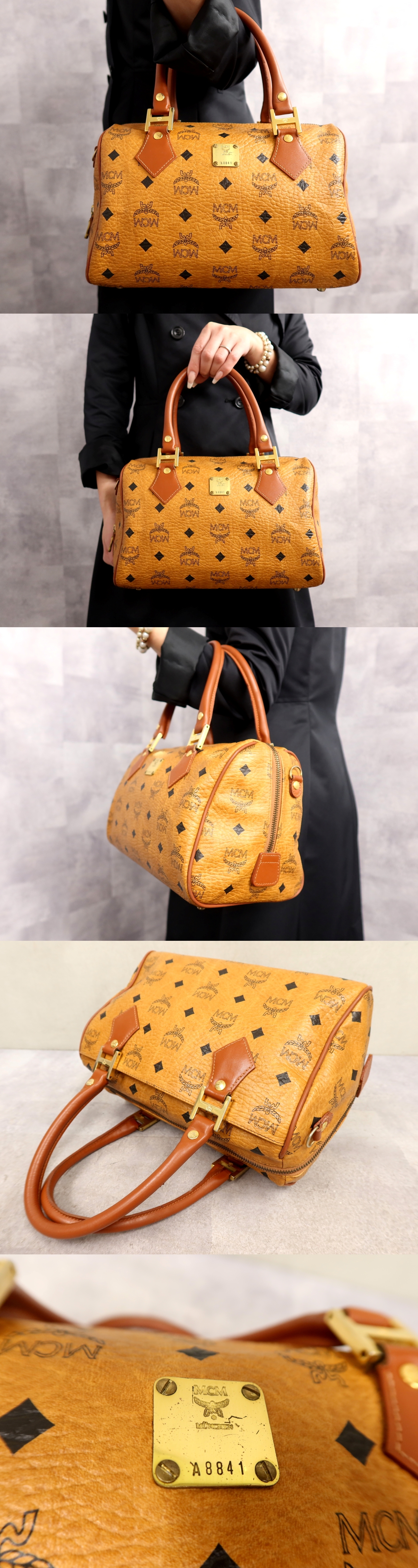 ●超美品●MCM エムシーエム●ヴィセトス●ロゴプレート●PVC カーフ レザー 本革●ハンド バッグ●ブラウン系●ゴールド金具●Js65627 收藏