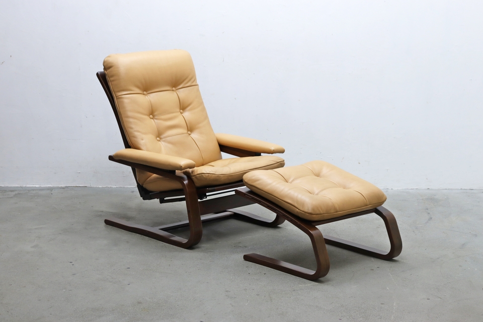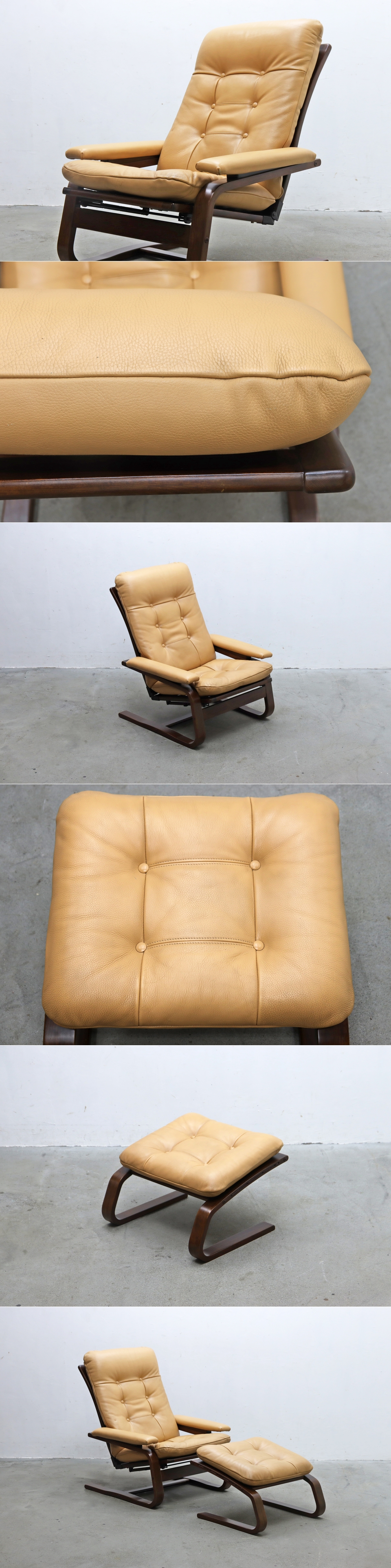 ◆FUJI FURNITURE 冨士ファニチア 本革 リクライニング 1Pソファ オットマン パーソナルチェア ラウンジチェア モダン/北欧/RBT17155◆ 收藏