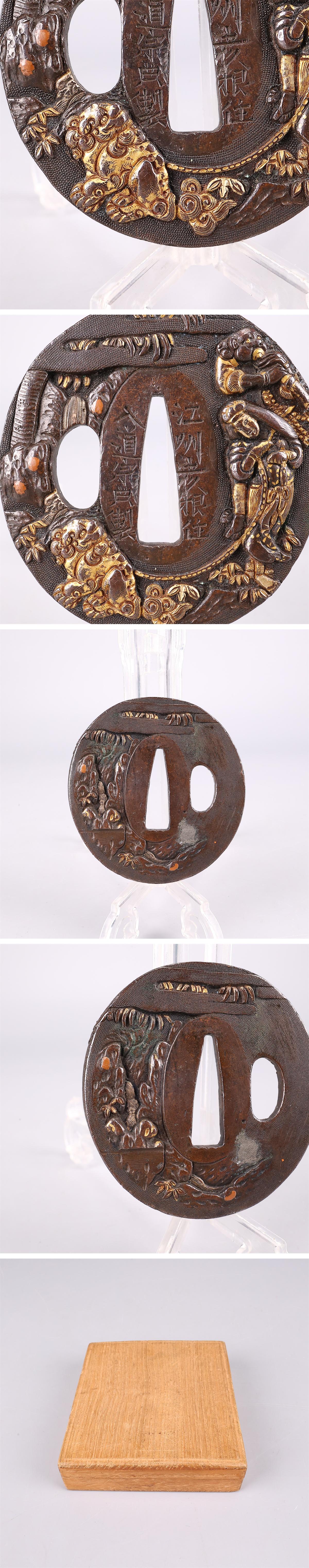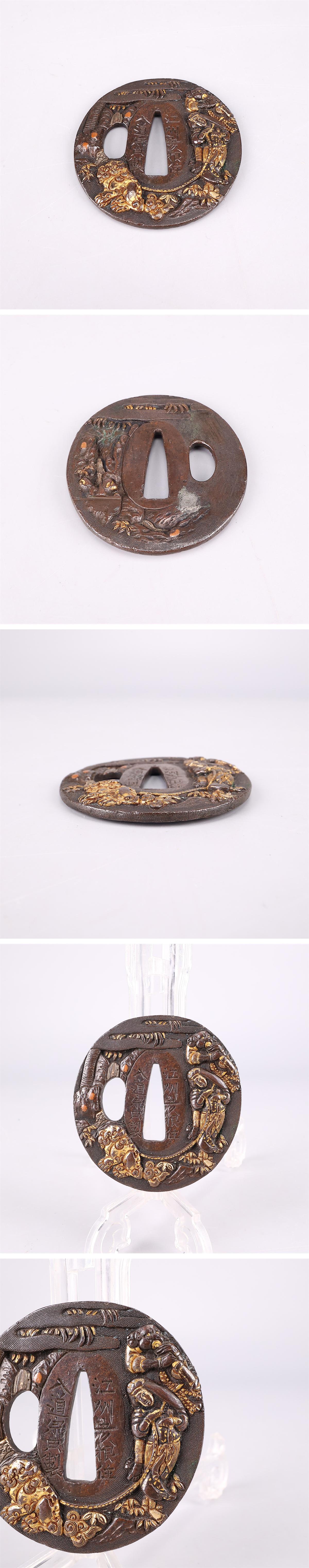 【吉】WB645 時代刀装具 【宗典製】 銅地金象嵌 鍔 幅6×6.3㎝ 重77g/箱付N! 收藏