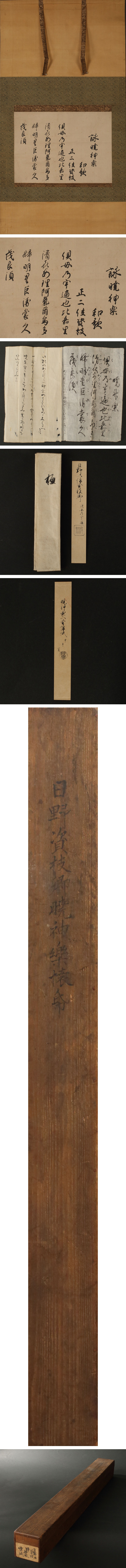 【深和】日野資枝 和歌詠草軸装「暁神楽」大倉好斎極 真筆(公家 公卿 書家 堂上歌人 国文学 書幅 遺墨 不見斎 万葉仮名) 收藏