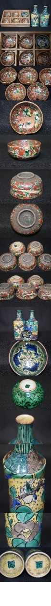 【光成】九谷焼「青木木米・賢人図・時代酒盃5客」「吉田屋・徳利2客・酒盃1客」無傷