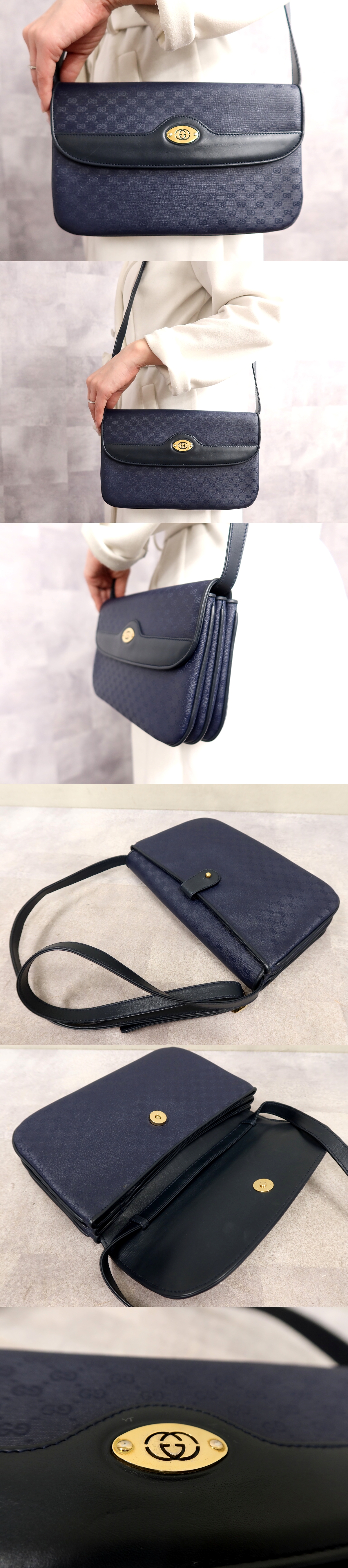 ●超美品●GUCCI オールド グッチ●マイクロGG●PVC カーフ レザー 本革●ショルダー バッグ●ネイビー●G金具●イタリア製●Js66036 收藏