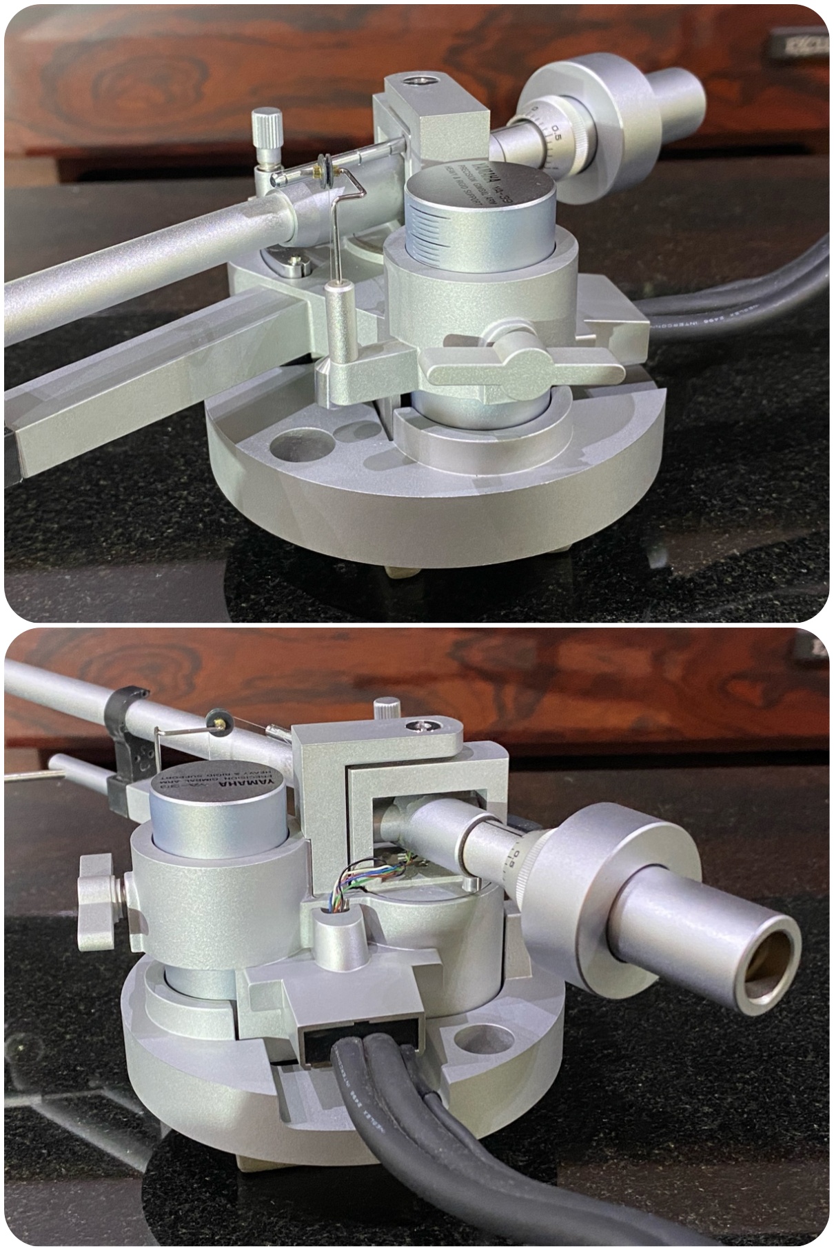 キャビネットの内部にケーブルを通さずに、最短距離でトーンアームに接続しているのも特徴。