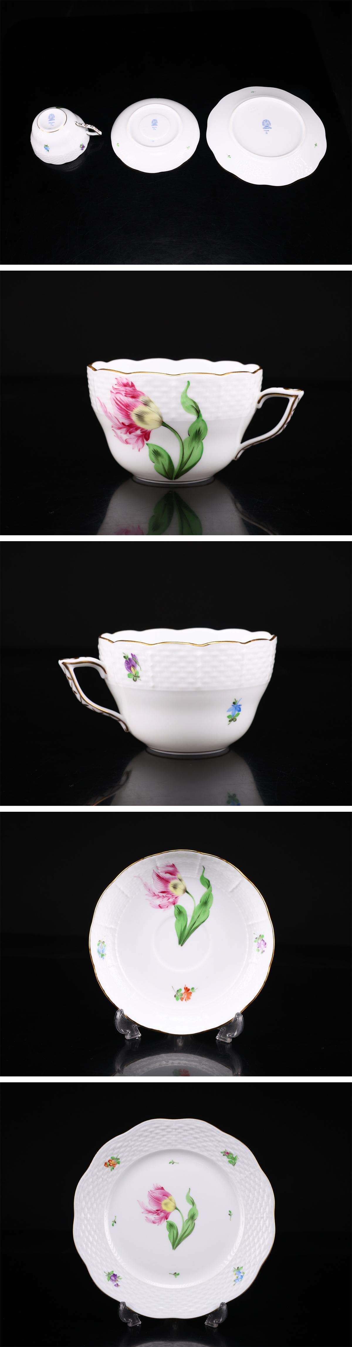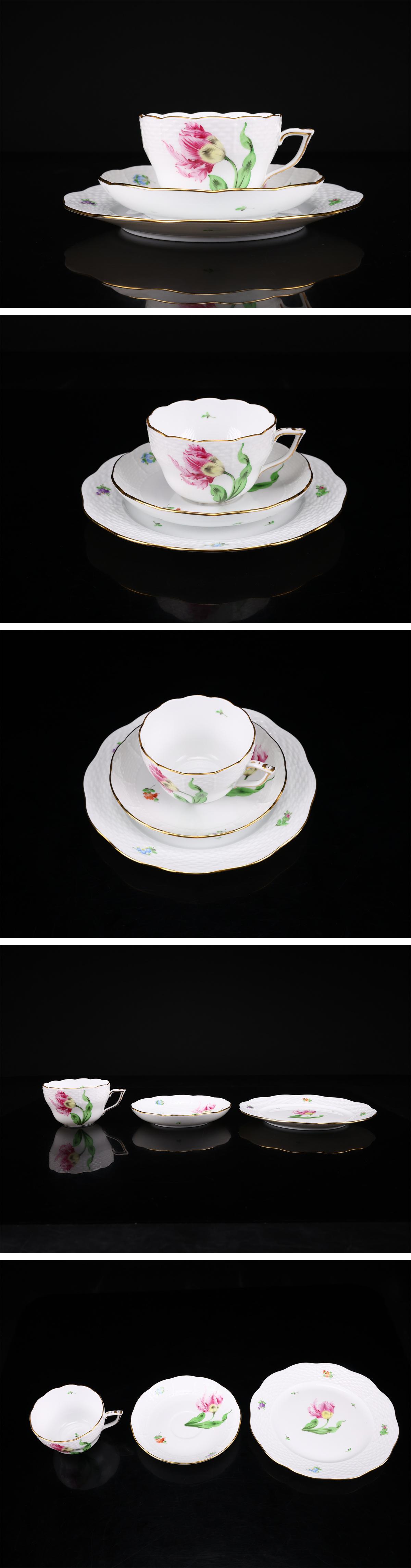 【吉】CQ550 Herend 【ヘレンド】 バルコニーの春 カップ&ソーサー プレート 1組 3点セット/美品g! 收藏