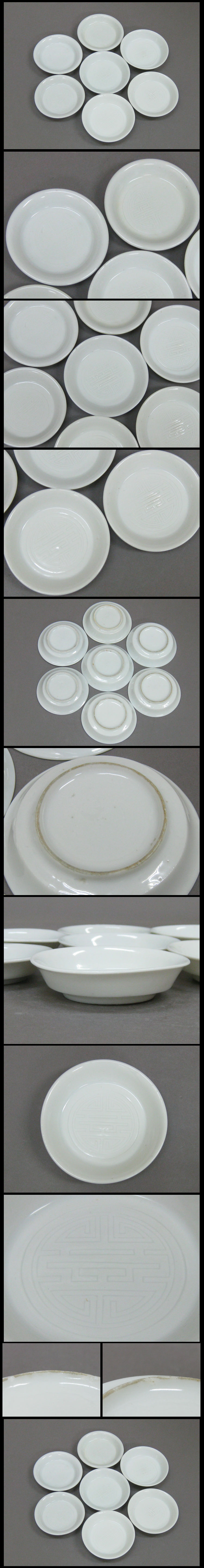 【心庵】時代物 白磁文字刻文/小皿 直径9.4~9.7cm 7客 B837 收藏