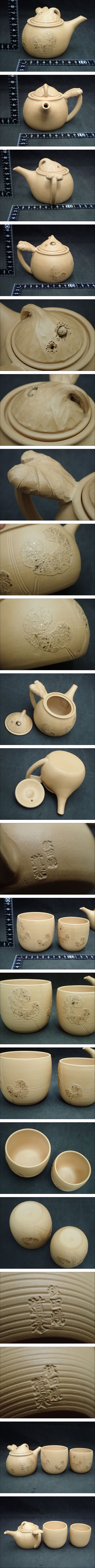 A39☆秋田焼 道楽 造 急須 茶碗 まとめて 蓮葉紋 蛙細工 検) 煎茶道具 茶注 萬古 からくり 古玩 (60) 收藏