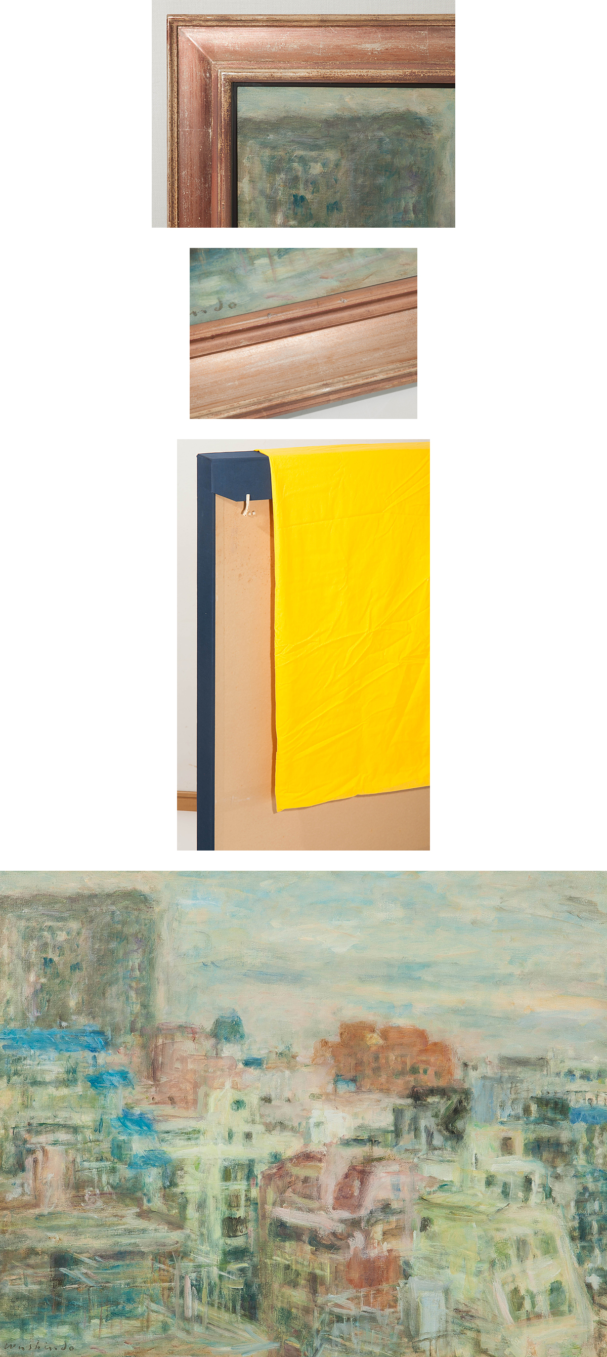【1on1】真作 今関鷲人 『朝の街景』 油彩 キャンバス 30号 1995-1996年 額装 ■ 春陽会会員