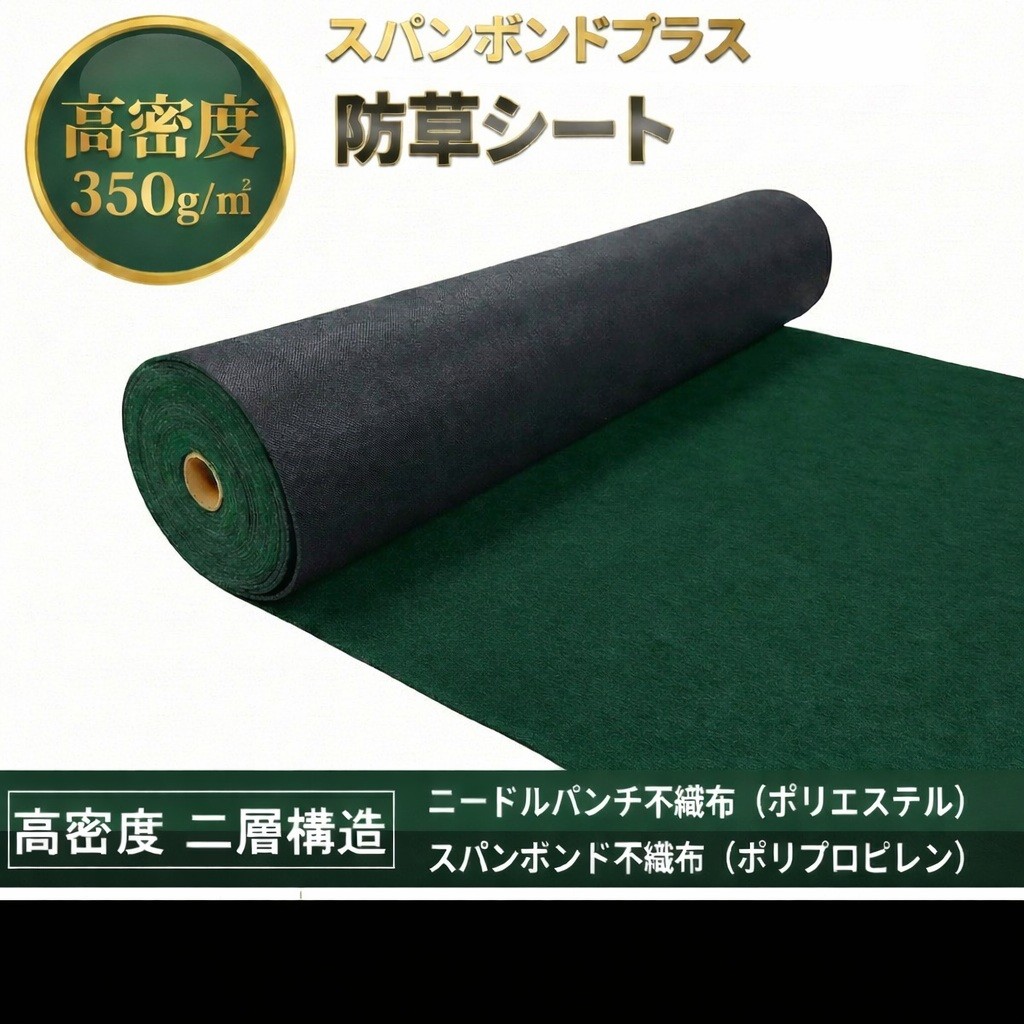 防草シート2層構造( 350g/㎡【深緑×黒 1m×10m巻】NP+S)超厚手ニードルパンチ&スパンボンド 【ダークグリーン×ブラック】(8) 收藏