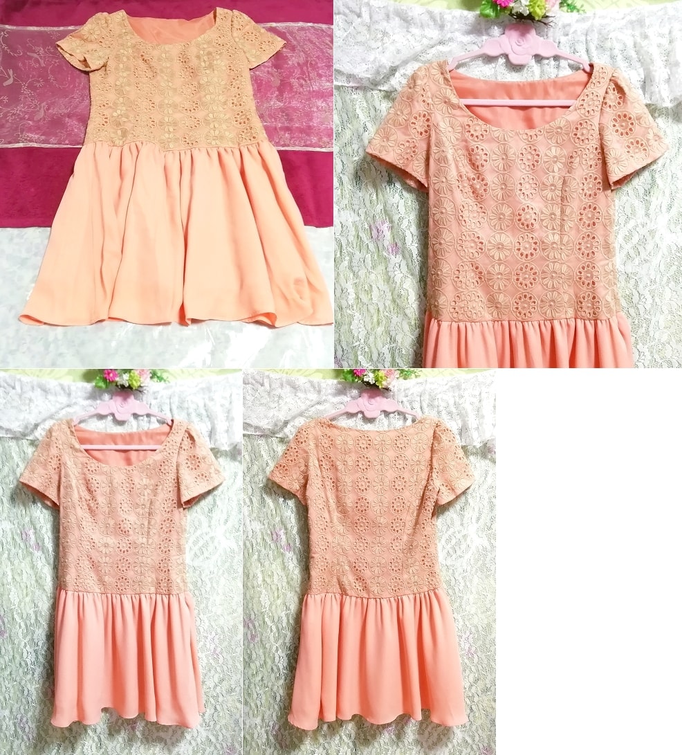 オレンジ花レースシフォンネグリジェチュニックワンピース Orange flower lace chiffon negligee tunic dress 收藏
