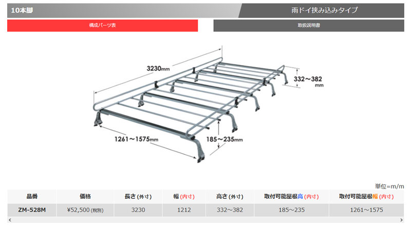 ハイエースバン ルーフキャリア 200系 標準ルーフ ロングボディ 高耐食溶融メッキ製 ZMシリーズ Rocky+/ロッキープラス (ZM-528M 收藏