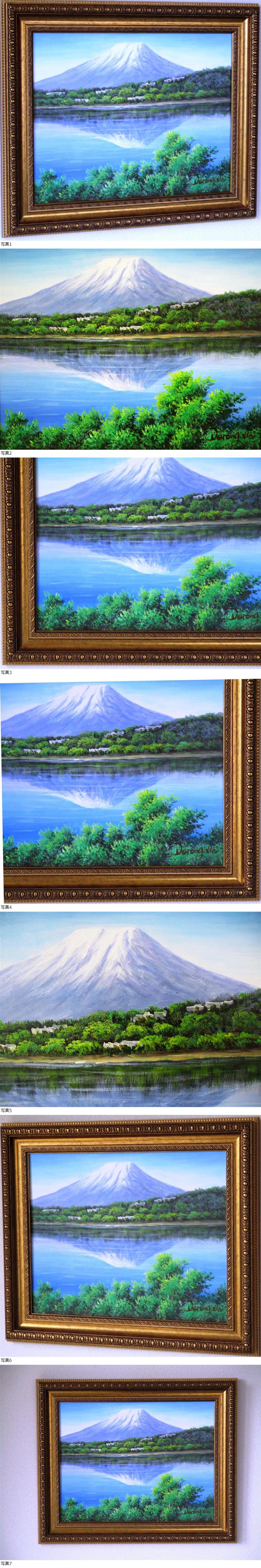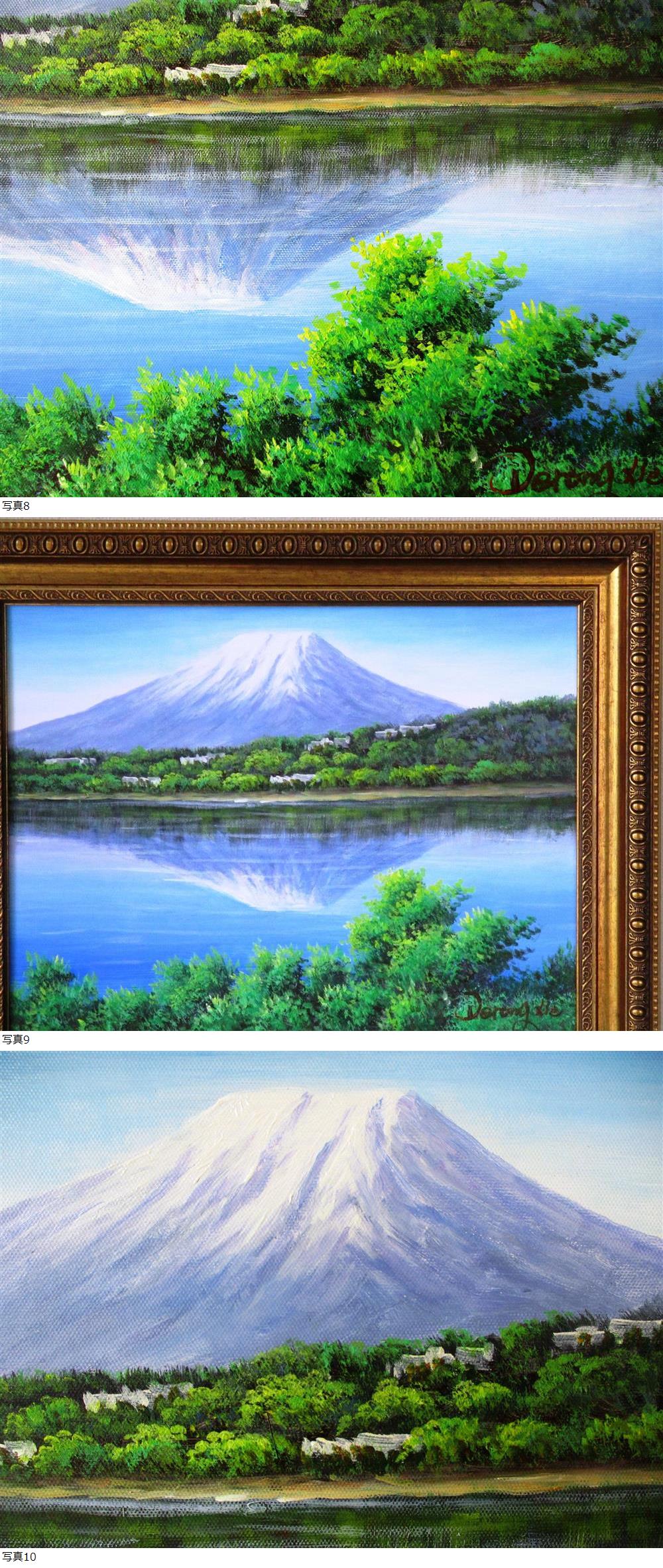 真作 謝徳栄 富士山絵画 油絵 風景画 新緑の河口湖からの逆さ富士 F6 WG316