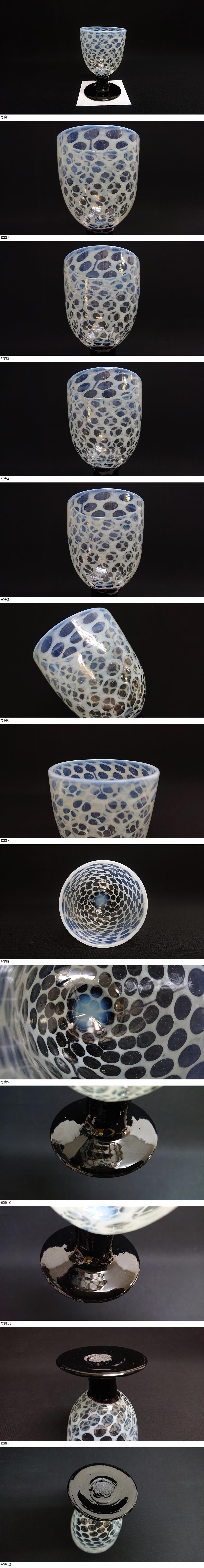 N-112 昭和初期 レトロ 氷コップ なつめ型 エナメル脚 乳白水玉紋 ガラス アンティーク雑貨 Showa Period glass retro 收藏