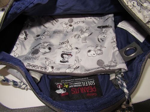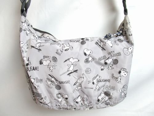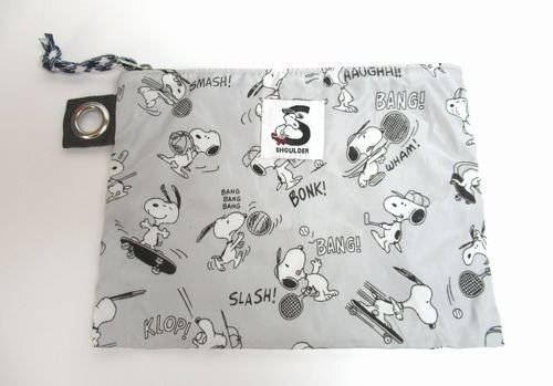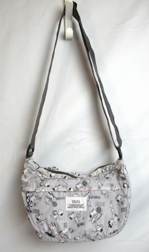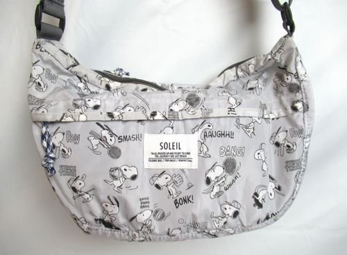♪Vintage PEANUTS SOLEIL(ソレイユ)スヌーピースポーツ柄/ショルダーバッグ&お揃いポーチ/斜め掛けショルダー/グレー系/期間限定 收藏