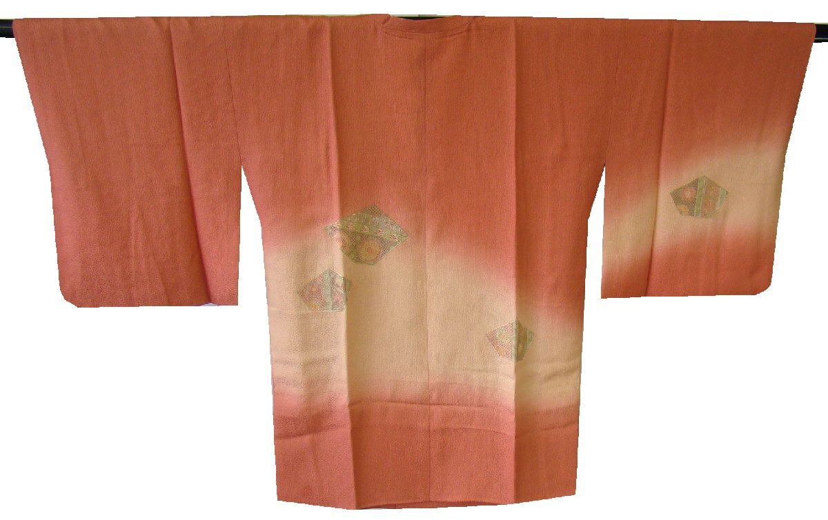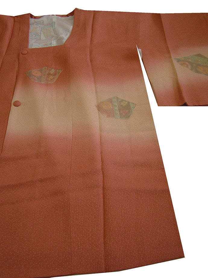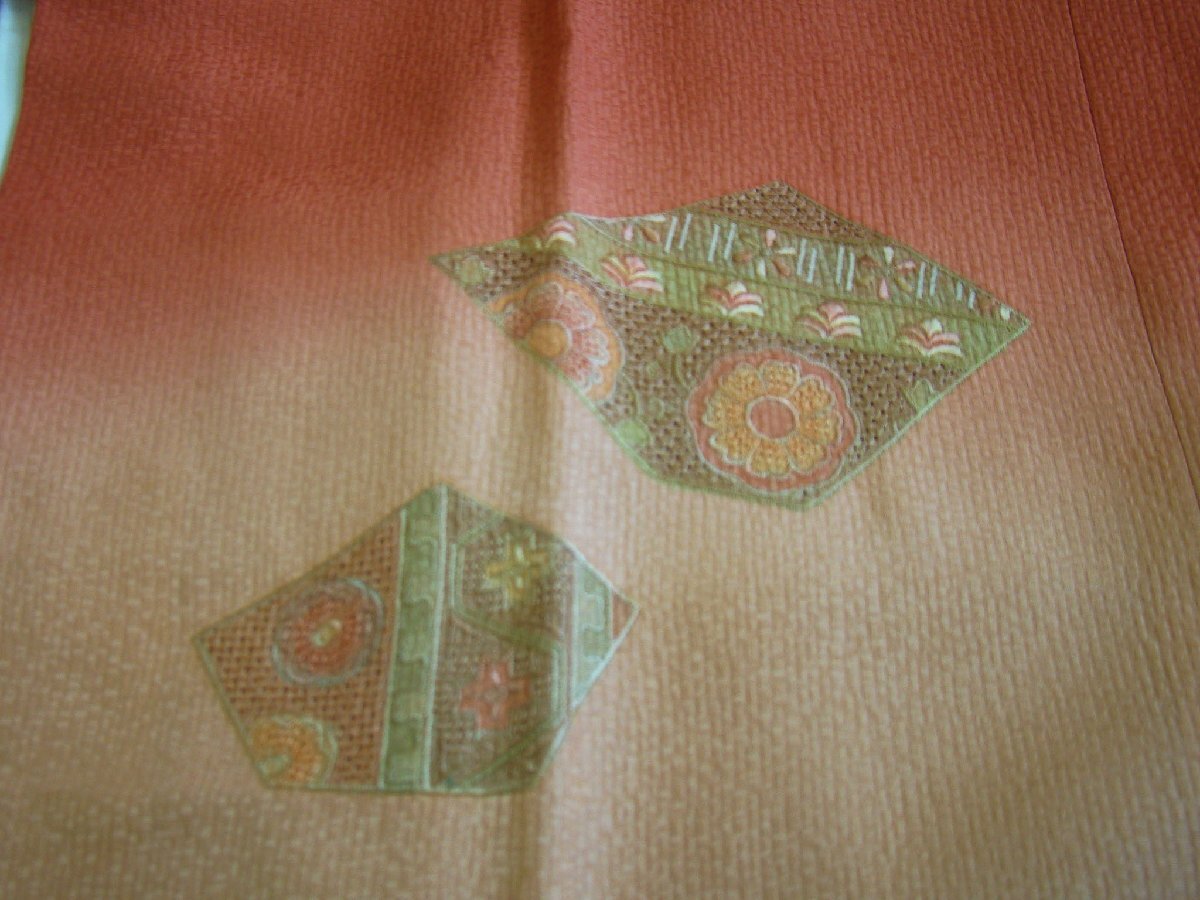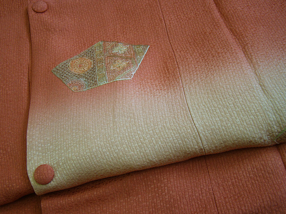 浅緋色地に金茶ぼかしに仙頭刺繍。