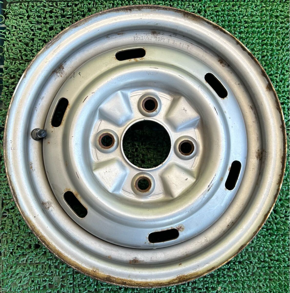 12インチスチールホイール 4本セット 4穴 PCD100 12×3.5J ハブ60mm 傷、サビ、腐食あり