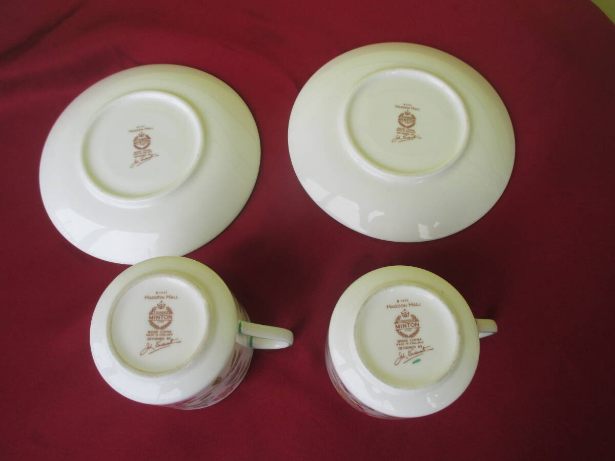 ★MINTON ミントン カップ&ソーサー 2客セット 珈琲 ハドンホール 人気柄 英国製 カップ外径6.7㎝ 高さ6.5㎝ ソーサー14.2㎝ 收藏