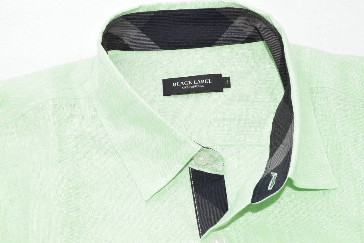 ☆新品未使用☆BLACK LABEL CRESTBRIDGE 麻100% 半袖シャツ リネン素材☆グリーン☆LLサイズ 肩幅48㎝ 身幅59㎝ 袖丈27㎝ 着丈75㎝ 收藏