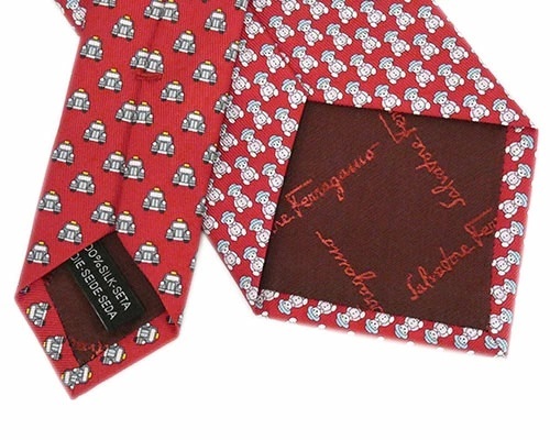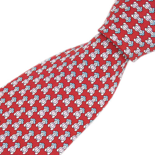 未使用 フェラガモ ブランド ネクタイ サルヴァトーレ・フェラガモ シルク 100% 熊 クマ テディベア レッド ペールブルー 赤 40312 收藏