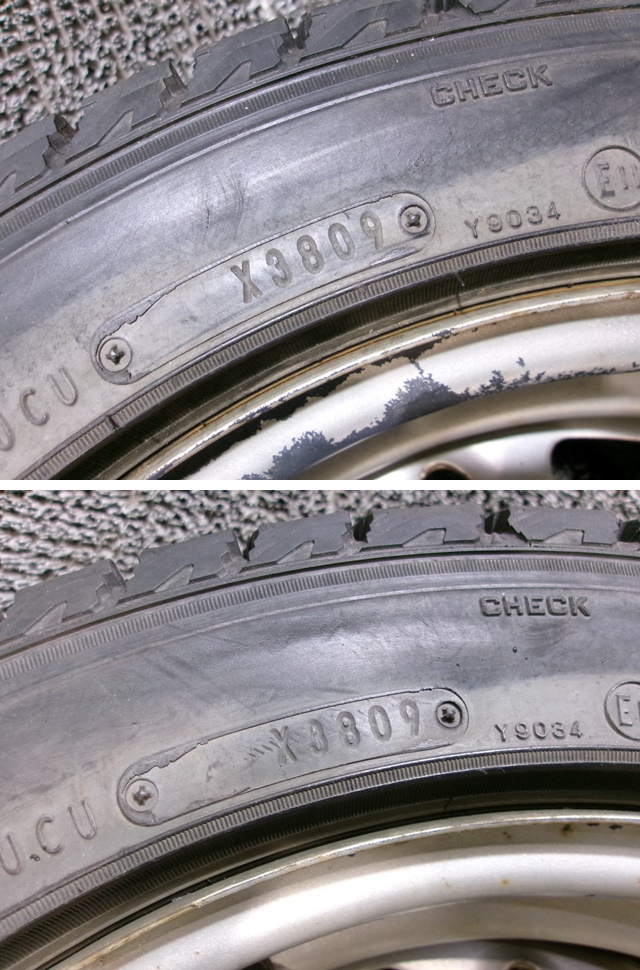 | 【ホイール】 2本のみです。 塗装剥がれが多いですが、ガリキズやクラック、曲がりは無さそうです。(7枚目上左右画像参照) 【タイヤ】 2本エアーあります。 2本6~7mmほど溝があります。(片べり、ひび割れ無) ひび割れはありませんが、製造年がかなり古い為交換前提でお考え下さい。 商品は中古品の為、キズ、除去しきれていない汚れ、相応の使用感などあります。 個人的な主観となりますので、必ず画像にてご判断をお願いします。 状態につきましては見落とし、記載漏れ等ある場合がございますのでご購入をお考えの方は不明点等あればお気軽にご質問ください。 付属品は画像の物がすべてとなります。掲載枚数の関係上、画像ではわかり難い部分もありますが、ご納得頂ける方のみでお願いします。 中古品という事をご理解頂き、ノークレーム、ノーリターンでお願い致します。 |