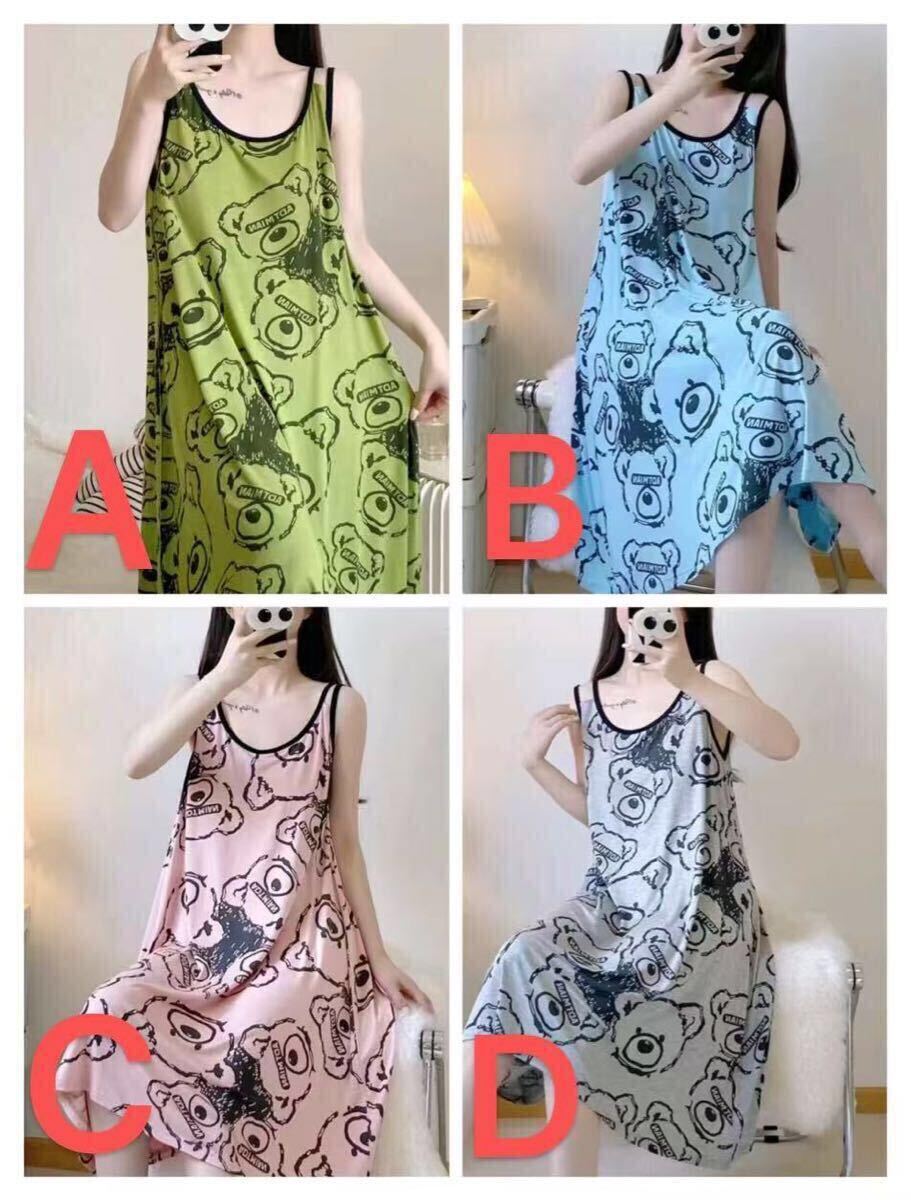 ルームウェア レディース 大きいサイズ キャミソールワンピース ノースリーブ 丸首 ロング クマ柄 ゆったり パジャマワンピース 部屋着 夏 かわいい部屋着 オーバーサイズ 夏のパジャマ 大人 レディース 可愛い LWGA071(4色L-4XL)