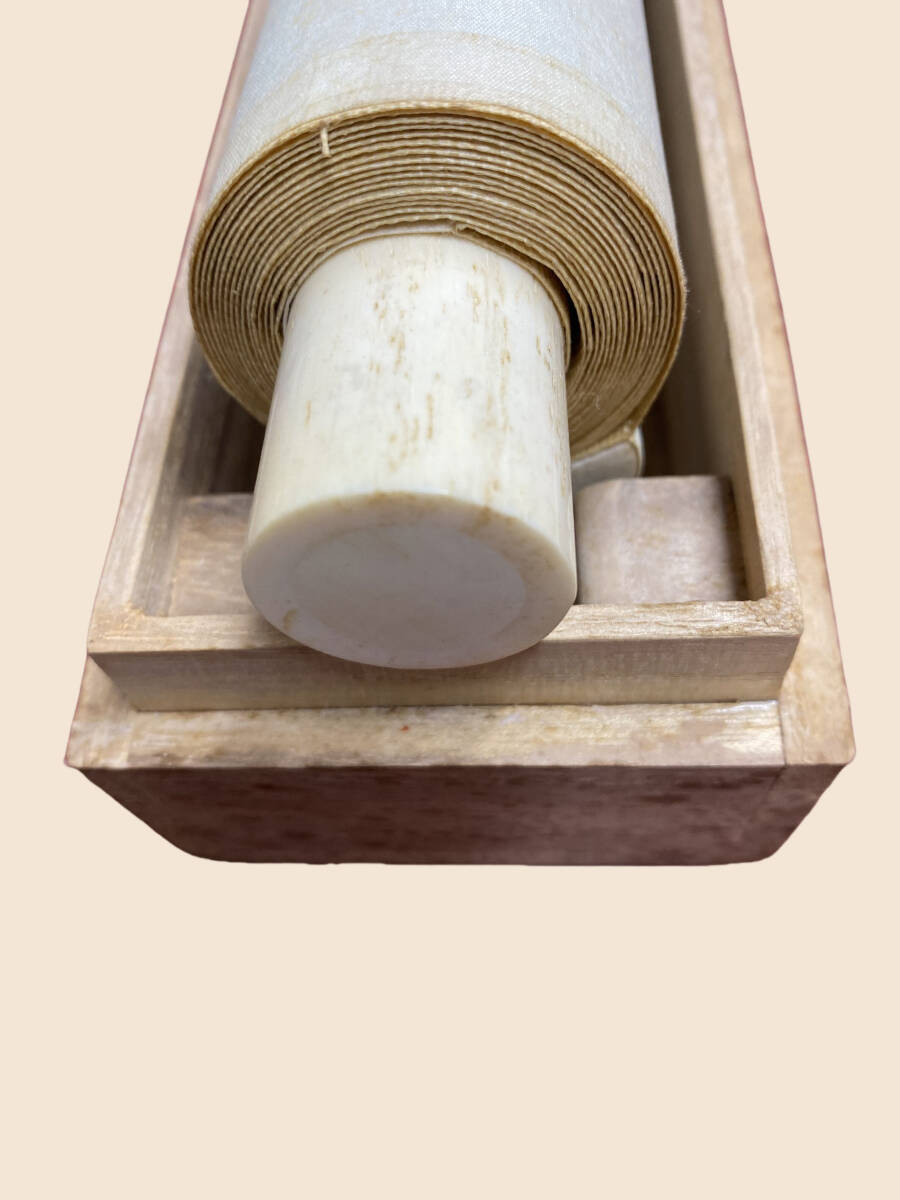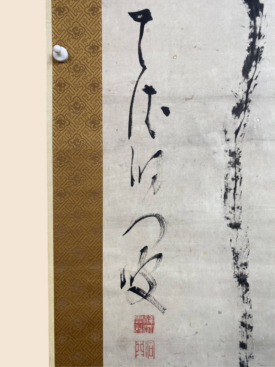 掛軸の軸先ですが、配送中の振動・気温・経年劣化等で外れてしまうことがあります。軸先の外れは、返品の対象にはなりません。大変お手数ですが、お客様ご自身での修復をお願い致します。