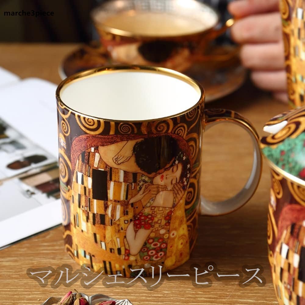 クリムトの名画《キス》 ボーンチャイナ 金メッキ ヨーロッパ風 コーヒーカップ&ソーサー 收藏