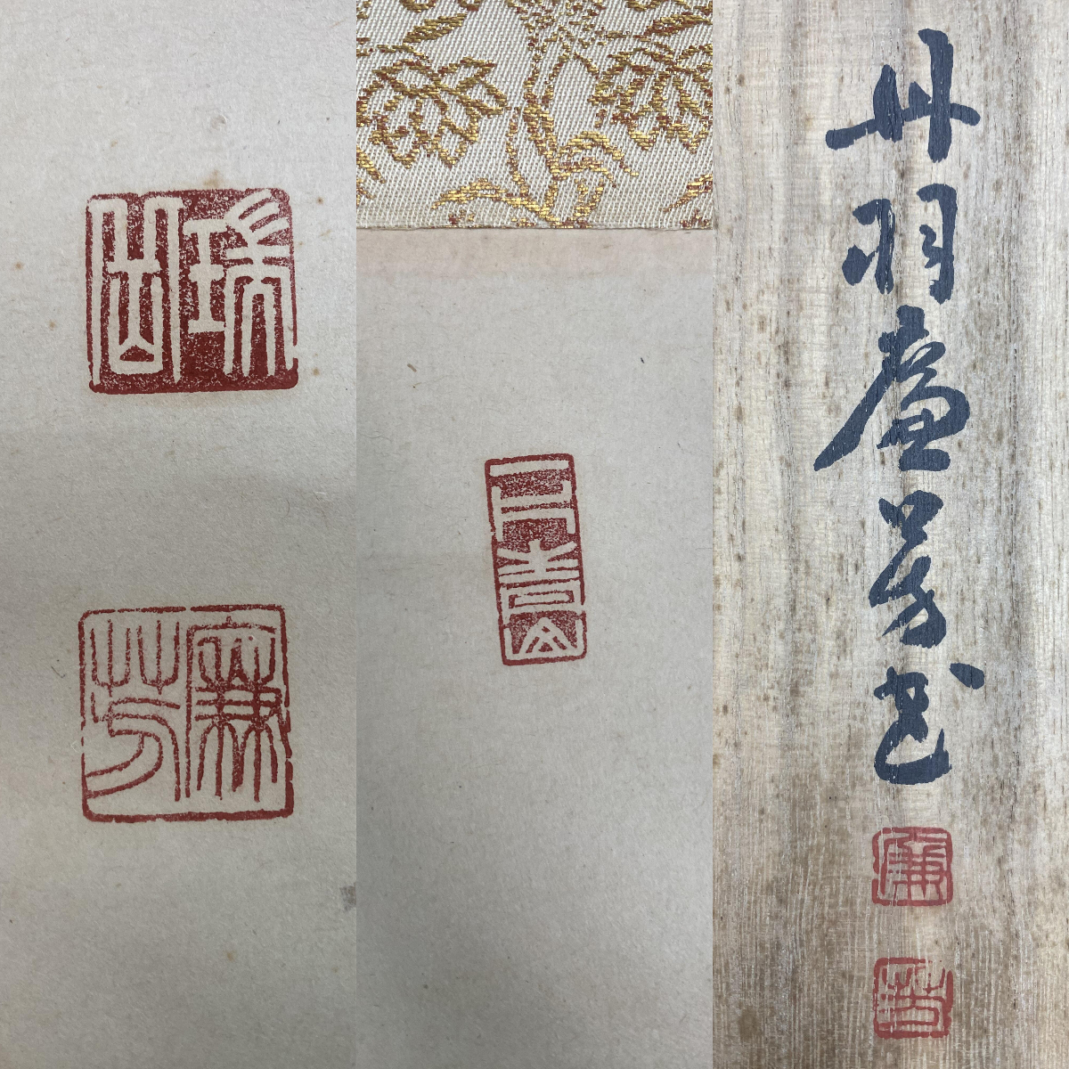 掛軸の軸先ですが、配送中の振動・気温・経年劣化等で外れてしまうことがあります。軸先の外れは、返品の対象にはなりません。大変お手数ですが、お客様ご自身での修復をお願い致します。
