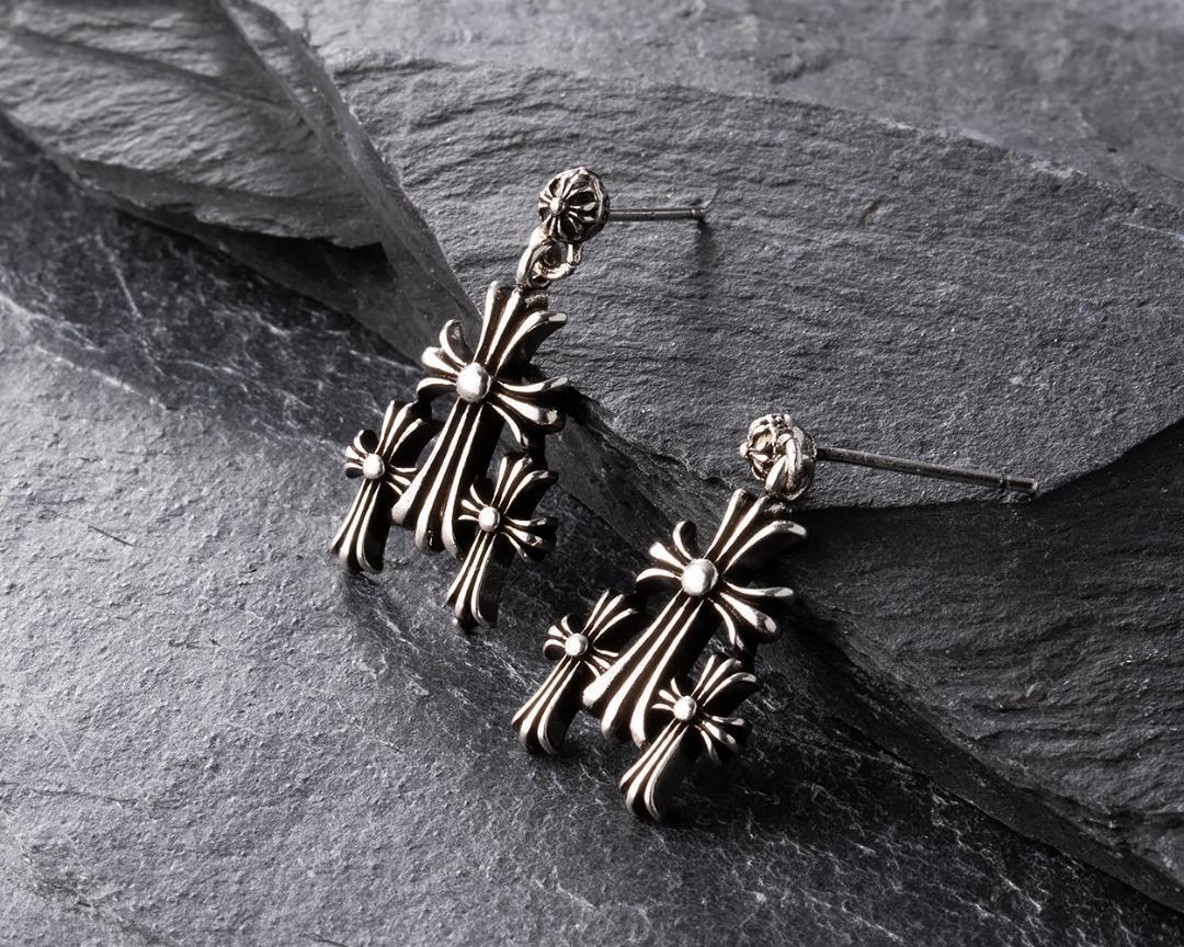 シルバー925製 ピアス トリプル クロス 刻印あり2個セット 72 即発送 收藏