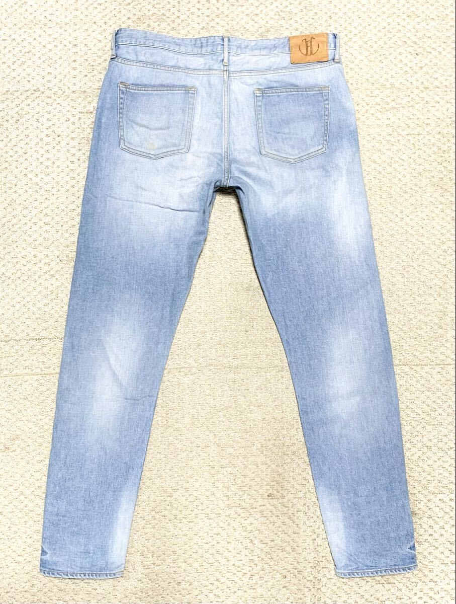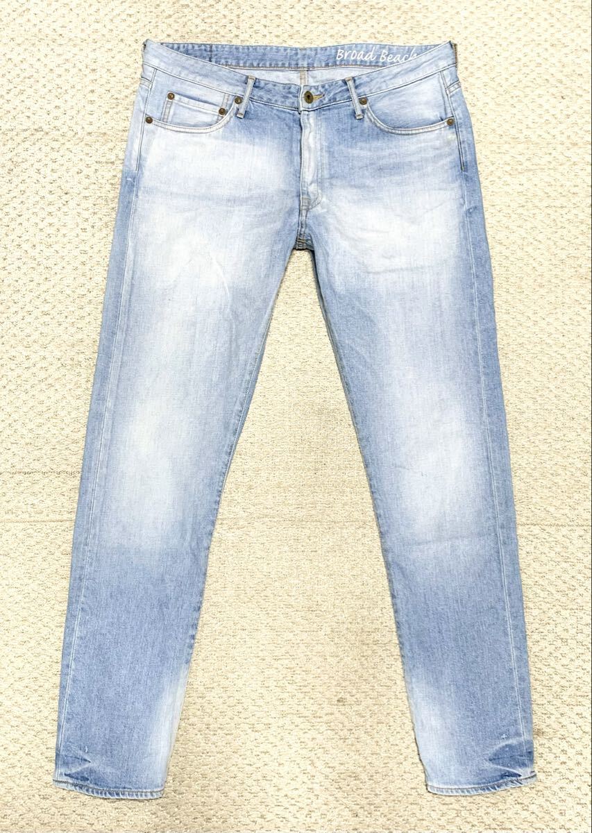 JAPAN BLUE JEANS(ジャパンブルージーンズ).ストレッチ テーパードデニム(Used加工の淡いインディゴ)、サイズ34です。