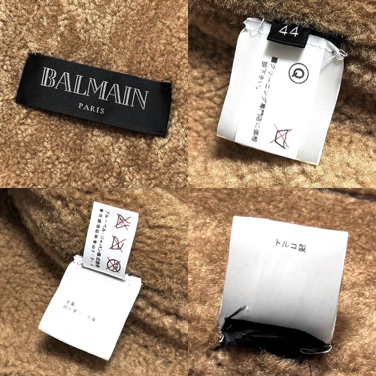 | 商品説明 | 【商品】 希少 傑作 14-15AW 定価68.4万 美品 BALMAIN HOMME バルマンオム リアルムートン B-3 アビエーター ライダースジャケット 44 羊革 ブルゾン 【商品説明】 BALMAIN HOMME(バルマンオム)のリアルムートン B-3 アビエーター ライダースジャケットになります。 定価:680,400円、ブルーレーベル・ジャパン株式会社の内タグが付属する国内正規品になります。 バルマンはピエール・バルマンが設立したフランスの人気ラグジュアリーブランド。 リリース数も極少数で、一瞬で全国完売した程の人気のあったバルマンオムの14-15AWコレクションの傑作『ムートンライダースジャケット』です。 ラグジュアリーなムートンファーと無骨なバイカーシルエットがカッコいいライダースジャケットで、沢山のフッション誌に取り上げられ 同シーズンの目玉アイテムとして話題になりました。 折り畳んでも全くシワにならず、しなやかで柔らかな最上級のモチモチの肌触りが特徴のアンティーク加工が施された極上ラムスキンのボディに、内側にはふかふかのシェアードムートンがびっしりと敷き詰められ、防寒性抜群の高級感溢れる極上の一着。 アーム部分と補強のレザーパイピング、ベルト部分にはは全てオイルカウハイド(牛革)が使用されておりますので、着れば着るほど味が出てきますので一生の一着になること間違いなしのアイテム。 ラグジュアリーブランドのムートンのジャケットやコートは大変高価なアイテムとして市場に出回っており、しっかりとした厚みがあるにもかかわらず、たいへんやわらかく、モチッとした弾力があることが、クオリティの高さを物語っています。 驚くほど柔らかくソフトな肌触りを堪能して頂ける最高級のリアルムートン(羊革)で仕立てられた極上の一着で、レザーアイテム特有の硬さがありませんのでストレス無く着用して頂けます。 丁寧になめされた羊革の質感はもちろん、艶やかな毛並みや優しい温もりは、いちど着たらやみつきになるほどです。 バルマンオムらしい無駄を省いた細身の立体的で美しいシルエットに仕立てられており、ムートンジャケットにありがちな着膨れもなく、ブランドイメージ通りのスタイリッシュな着こなしを表現して頂けます。 現代的にモディファイされたムートンジャケットは、カジュアルでありながらもラグジュアリーで、細くてスタイリッシュ、そのうえ軽くて暖かく、ひと目で高級感が伝わる¨大人が着るに相応しいムートンジャケット¨です。 非常に洗練されたディテールが魅力となったラグジュアリーブランドのバルマンオムならではの完成度の高い一着です。 贅沢な素材を使いながら、長く連なった2本のネックストラップ・エポーレット・カーブした細いアーム・エルボーに充てがわれたレザー・裾ベルトの本格的なバイカーデザインになっています。 無骨なイメージのあるムートンフライトジャケットにライダースの要素を掛け合わせたバルマンならではの解釈により現代的に昇華されたお洒落且つこなれたデザインに、上質なマテリアルの表情がプラスされることにより、圧倒的な存在感と風格あるラグジュアリー感を放つアイテムに昇華されています。 フロントはエッジの効いたダブルジップデザイン、襟を立ててモードに着ても、パーカーなどと合わせてカジュアルダウンしてもOKですので、あまりムートンジャケットを着用されないという方でも使いやすいデザインです フロントはダブルジップアップ開閉、ストームフラップ付きの比翼仕立て、両肩にエポレット、ジッパー付きのハンドウォーマーポケットが2つ、袖口にはジッパーカフ、裾部分にはアジャスターベルト、襟元は保温と寒風の進入を防ぐために、2本のベルトとバックルで閉めることが可能。 ブランドをしっかりと主張した特徴的なデザインで、存在感のある着こなしを楽しめます。 素材・デザイン・シルエットの全てにこだわり抜かれた、さすがバルマンオム!と唸らされるクオリティーの高い仕上がりとなっています。 デザイン面は勿論ですが、特筆すべきはその保温性。 内側にはシェアリングされたふかふかと柔らかな最高級のムートンが敷き詰められ、極限の寒さでも体温に包まれているような暖かさを維持します。 高い防風性・防寒性を誇り、どこに行っても上半身は寒さを感じることはありません。 抜群の保温性を誇りながら、美しいシルエットラインを描くその技術力はさすがバルマンオム。 防寒保温性に優れ、ウインターシーズンのメインアウターとして重宝する一着。 リアルムートンによる高級感、洗練されたデザイン性・シルエット・ディティールは一切妥協の無い完成度の高い仕上がりの一着ですので、ワンランク上のラグジュアリーな大人のコーディネートが完成致します。 トレンドに左右される事もありませんので一生物として長くお使い頂ける、リッチ感溢れる素晴らしいムートンジャケットです。 バルマンオムならではの拘りの作り