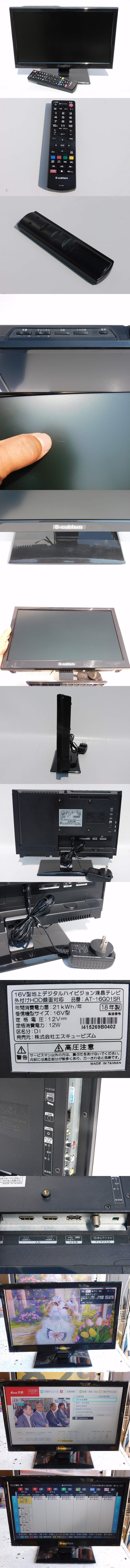 【e4012/初期化済み/動作品/送料無料】S-cubism 16インチ(型)液晶テレビ AT-16G01SR リモコン付き 中古 清掃済み 子供部屋 小型 收藏